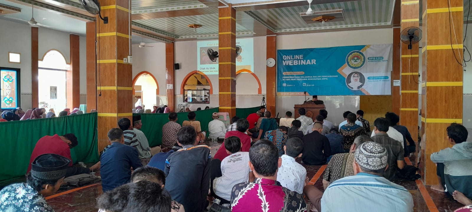 Tegal (Minggu 12/3), LDII kabupaten Tegal mengadakan webinar dengan tema Cara Mendidik Anak di 1.000 Hari Pertama Kehidupan Melalui Pemberdayaan Keluarga Dalam Pengasuhan. Webinar yang dilaksanakan di dua tempat yaitu di masjid Al-Huda Bogares Kidul dan Al-Kautsar Tembok Lor ini diikuti oleh seluruh warga LDII guna memberikan bekal pengetahuan dalam mendidik dan pengasuhan anak usia dini.